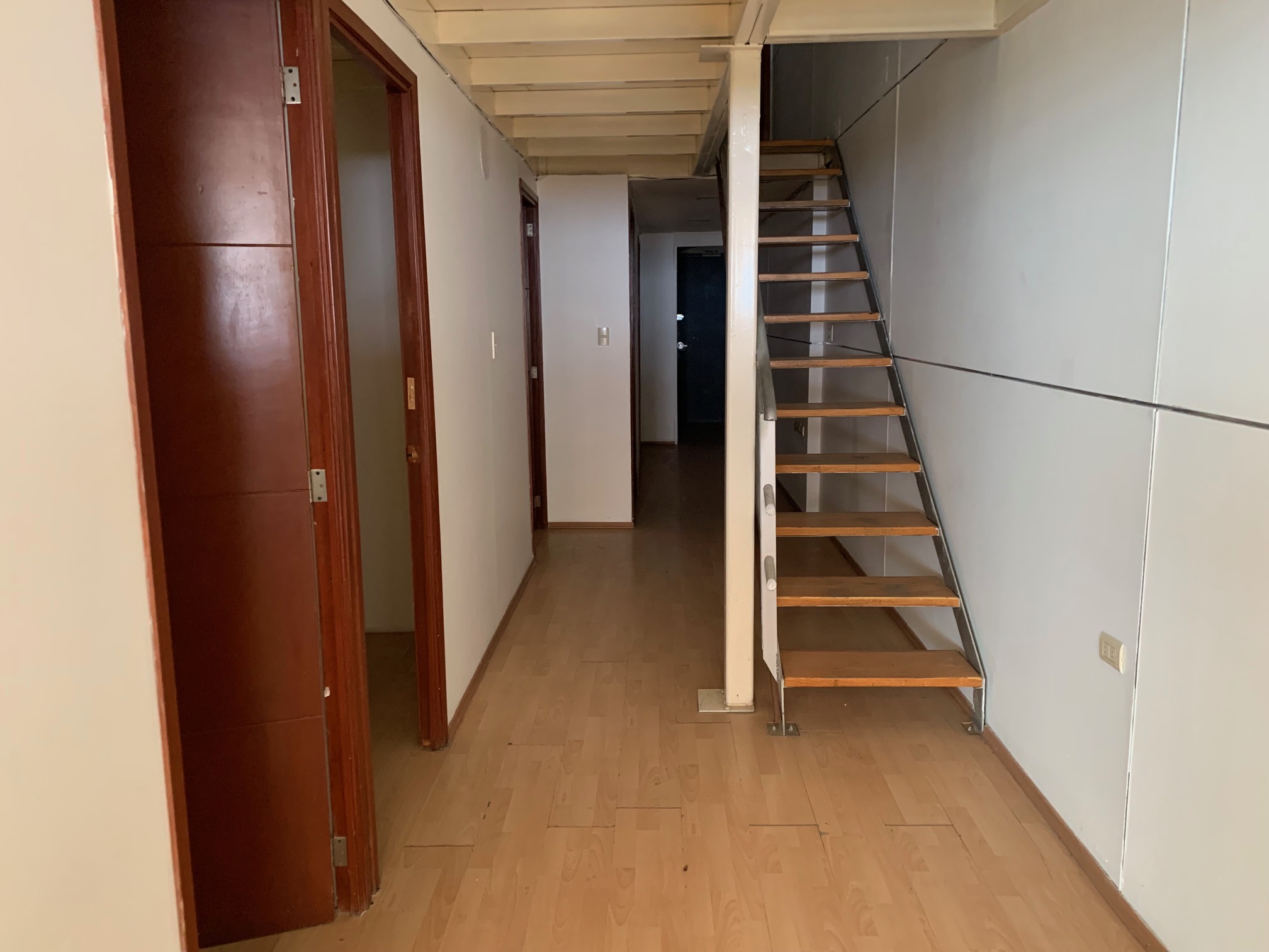 Distribución: recepción, tres despachos privados, área de servicios con acceso a proveedores, medio baño, amplio tapanco en planta alta, dos despachos privados en planta alta, un lugar de estacionamiento subterráneo para locatario.