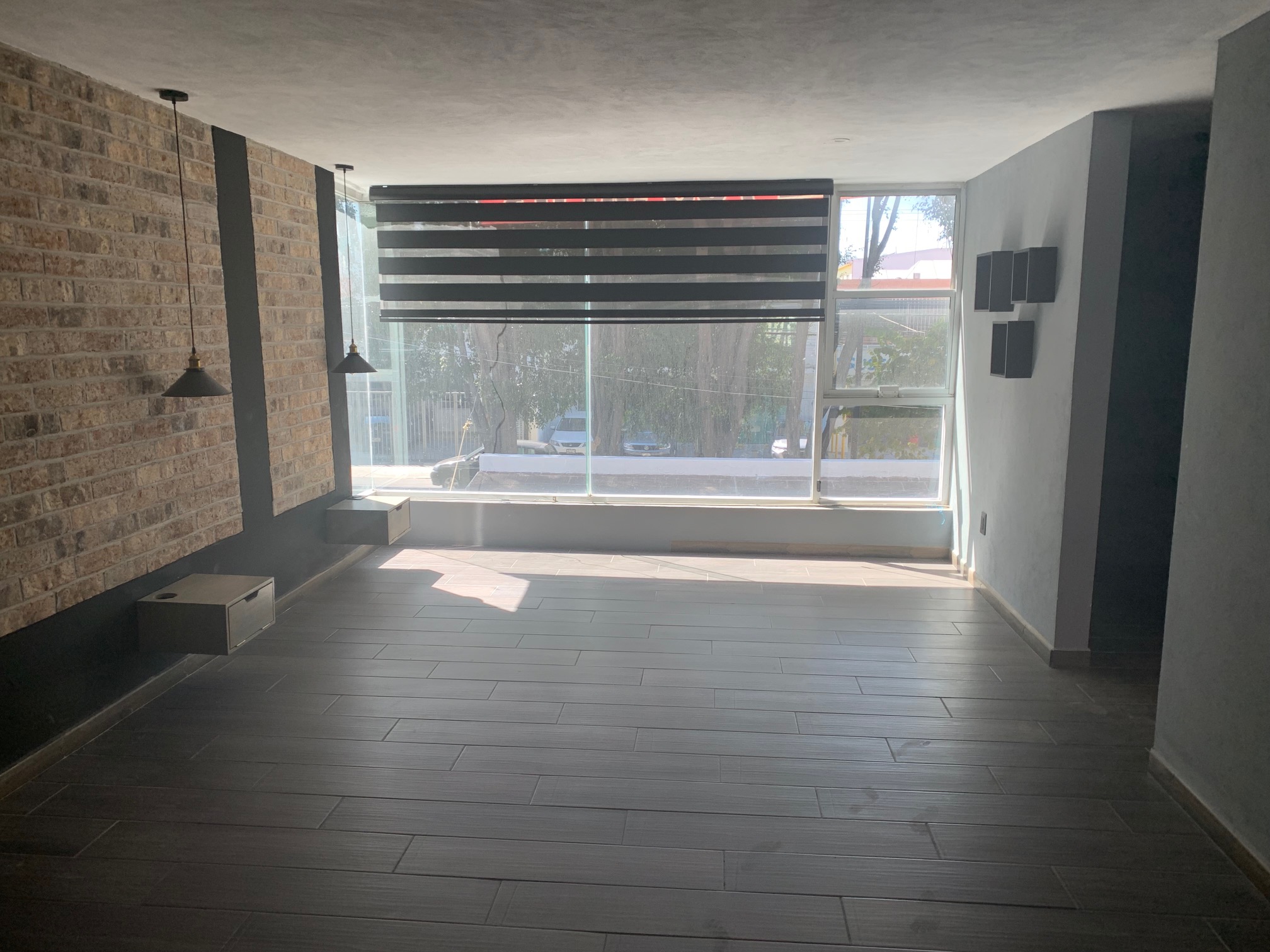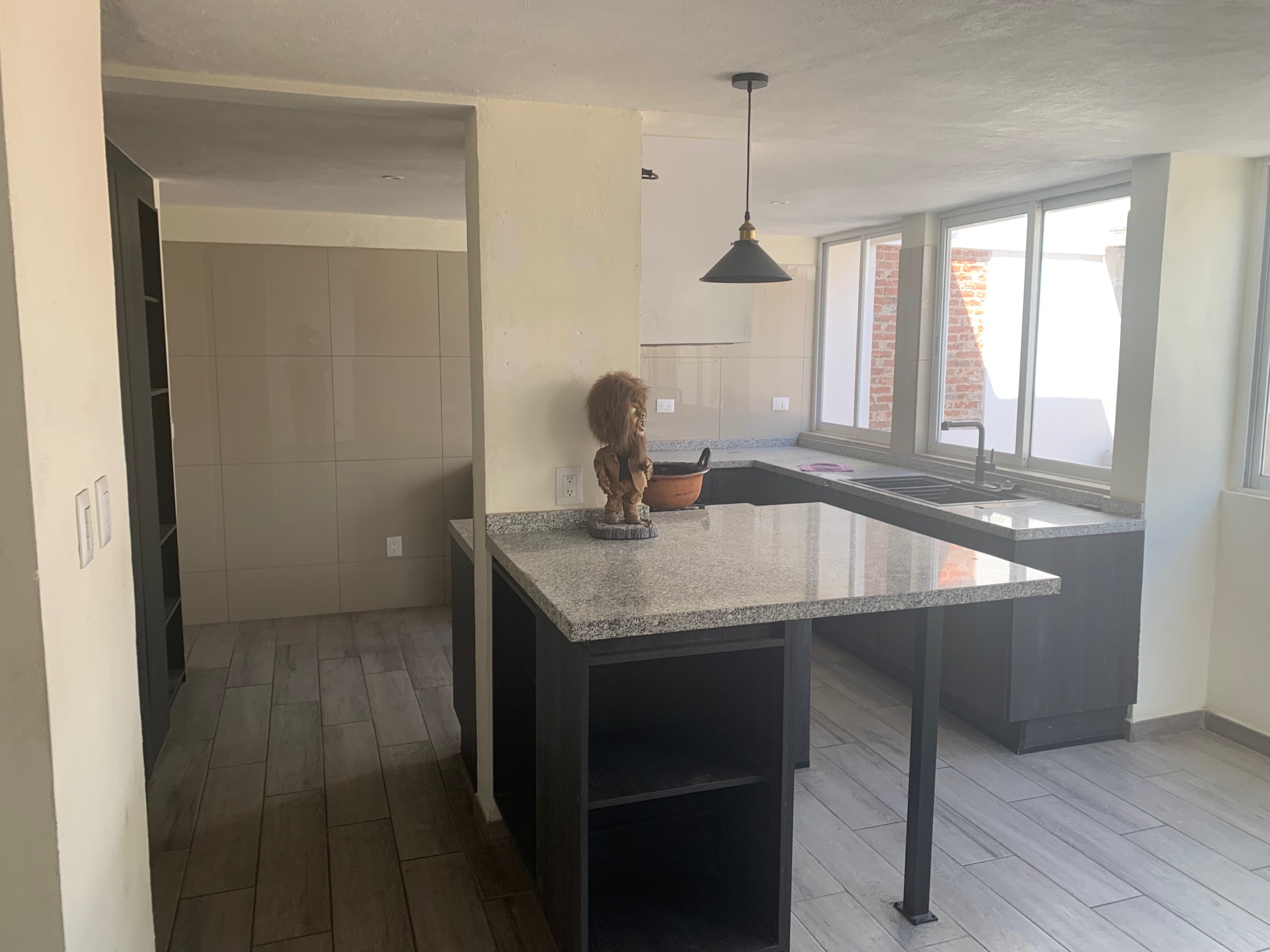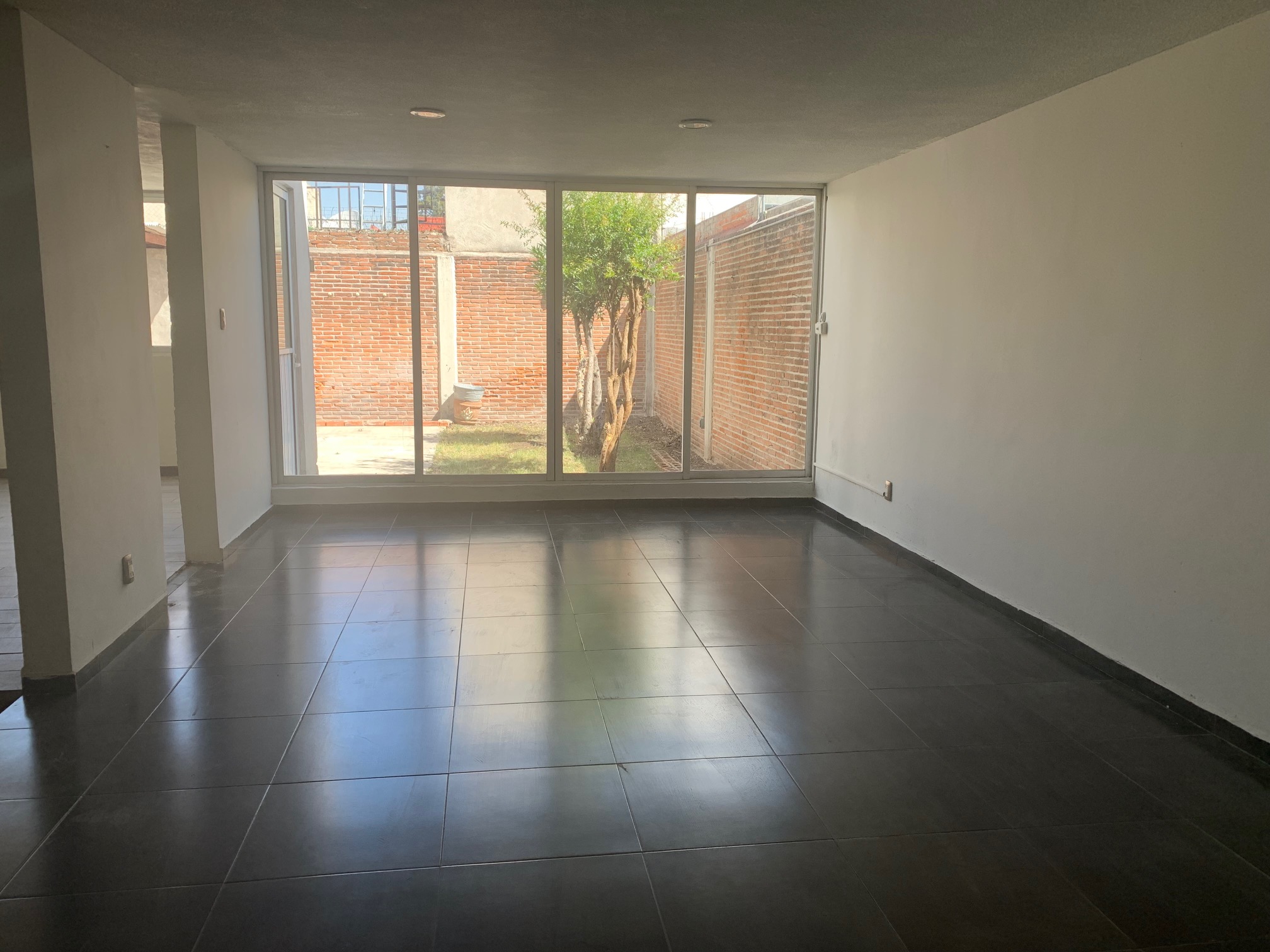 Planta baja: sala en desnivel, comedor, cocina integral con estufa, campana, isla con cubierta de granito, amplia alacena, pasillo de servicio, medio baño visitas, amplio patio de 55 m2. aprox., estacionamiento para 5 autos (2 techados, 3 descubiertos).